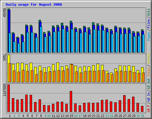 | Daily Statistics for August 2008 | ||||||||||||||||